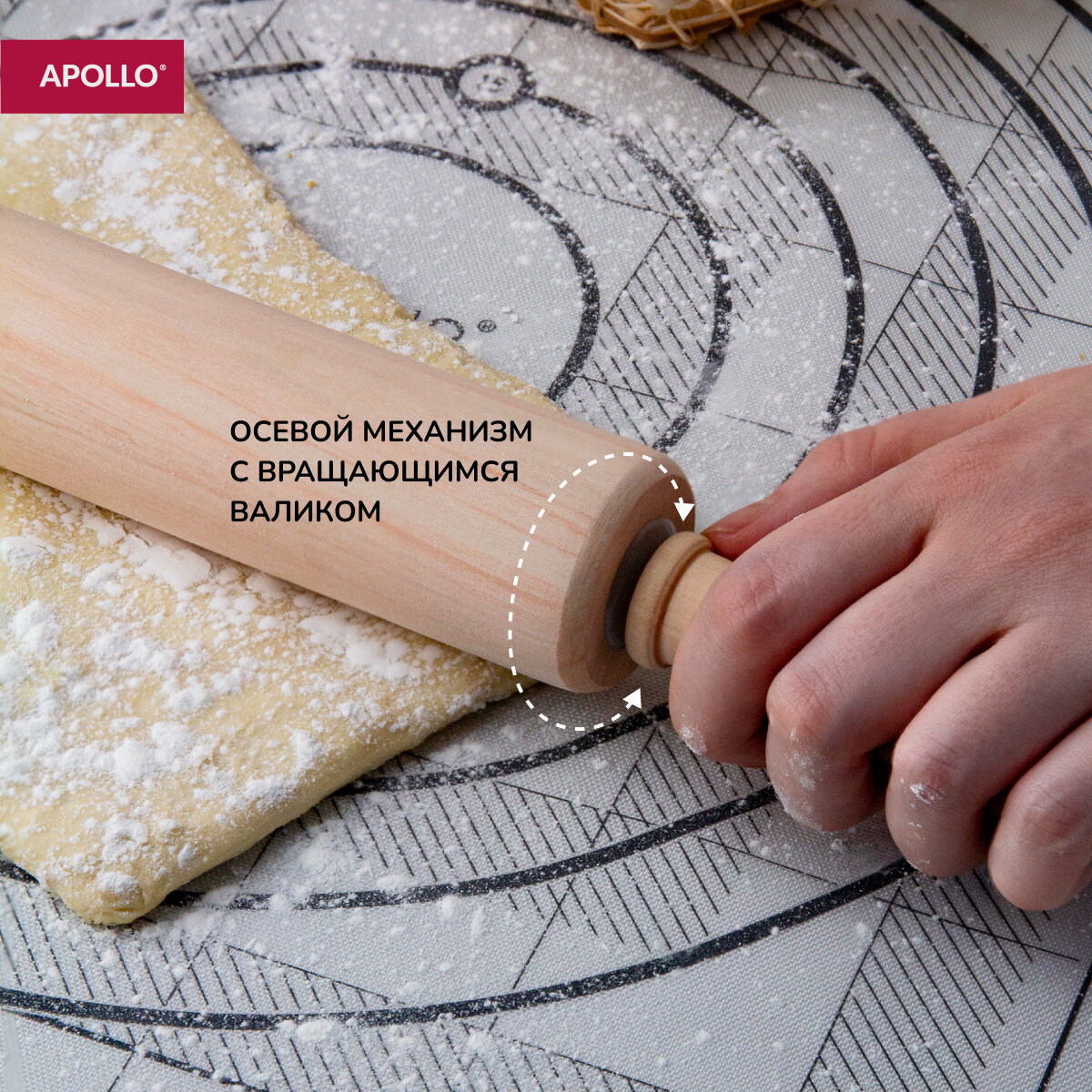 Скалка деревянная для раскатки теста с вращающимися ручками APOLLO "Roll", 43 см