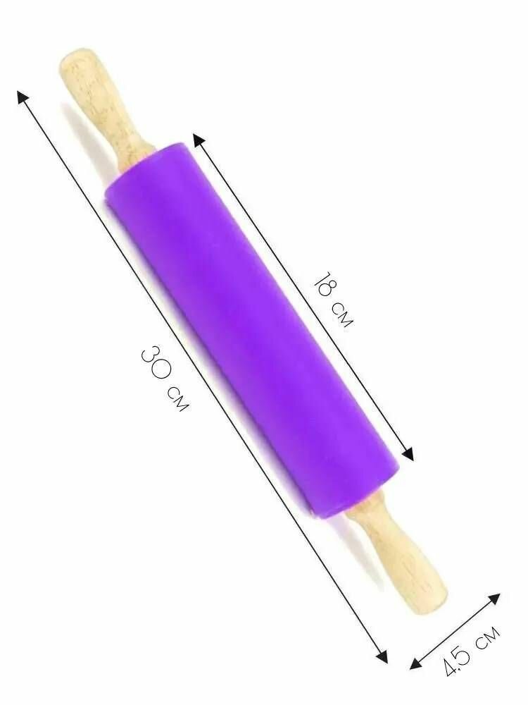 Скалка силиконовая с деревянными ручками, 18 см., сиреневый интересное: