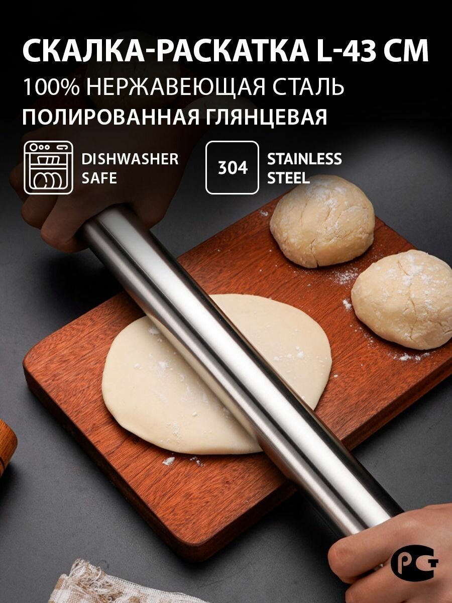 Скалка для теста металлическая 43 см/ролик для теста/раскатка для кондитера/валик для теста/кухонная утварь и аксессуары интересное: