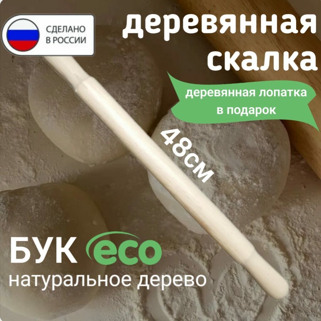 Скалка деревянная для теста 48 см +лопатка в подарок интересное: