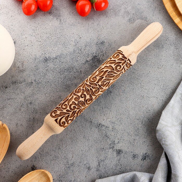 Купить Резная скалка с узорами "Листва" для выпечки, бук, 40 мм × 350 мм