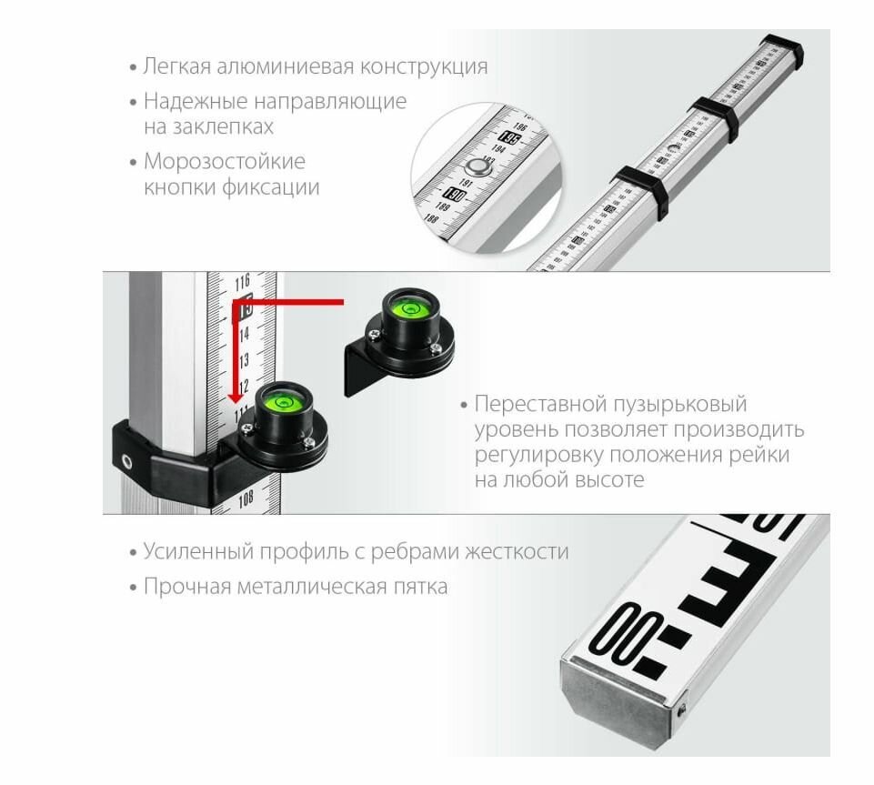 | Особенности вехи/рейки | телескопическая / шкала в миллиметрах |