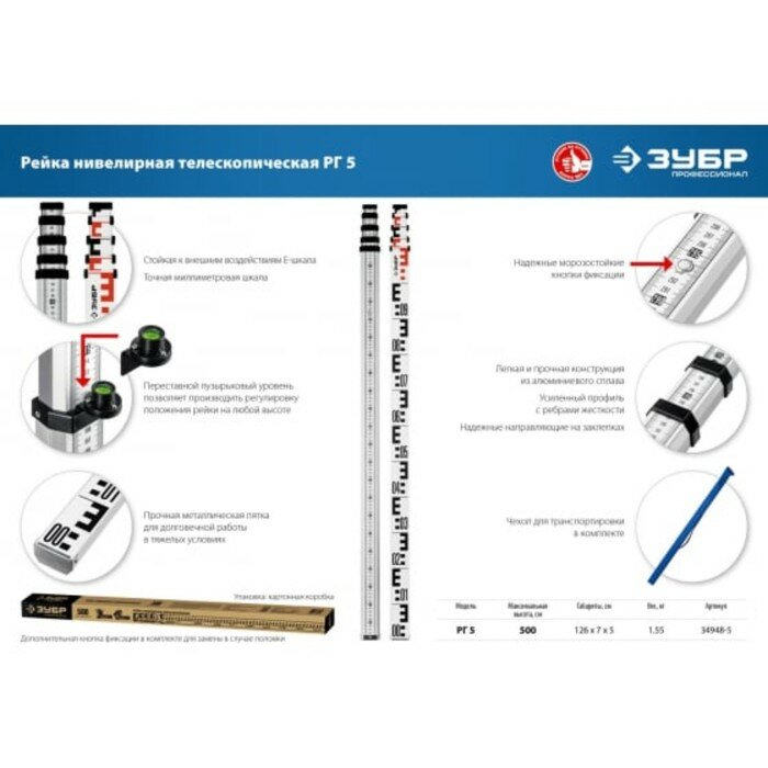 Рейка нивелирная Зубр РГ 5 (34948-5) интересное: