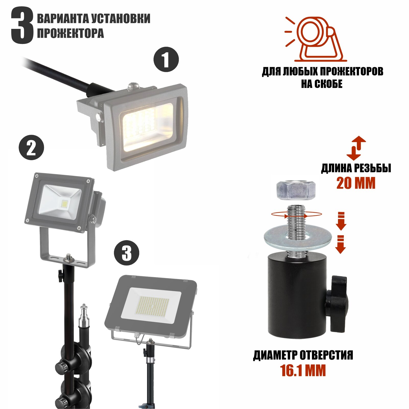 | Дополнительная информация | В комплект входит журавль, с помощью которого можно увеличить высоту стойки до 240 см, обеспечивая широкий угол освещения и равномерное распределение света, или использовать его в наклонном положении. |