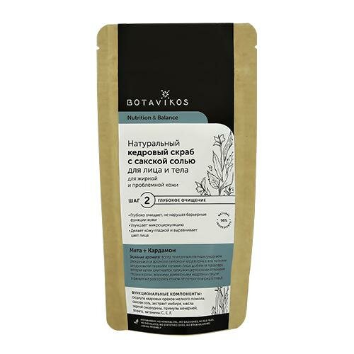 Скраб BOTAVIKOS Натуральный кедровый с сакской солью для жирной и проблемной кожи Nutrition & Balance 100 гр