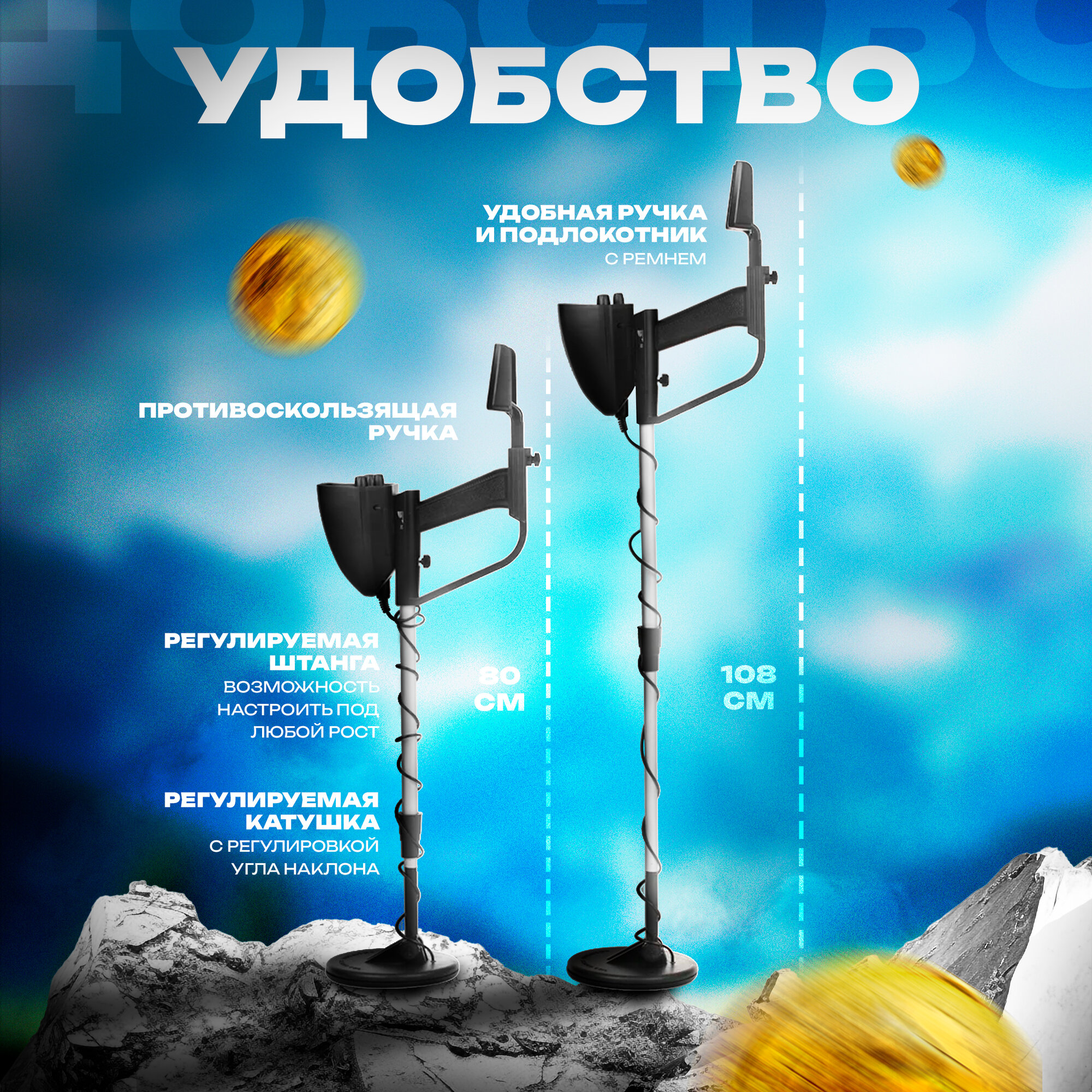 Металлоискатель ручной подводный грунтовой для поиска чермета металлолома, монет, золота, серебра, частота 5.69 кГц, VLF интересное: