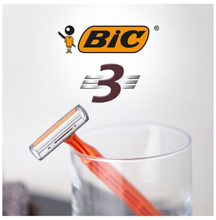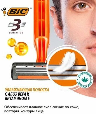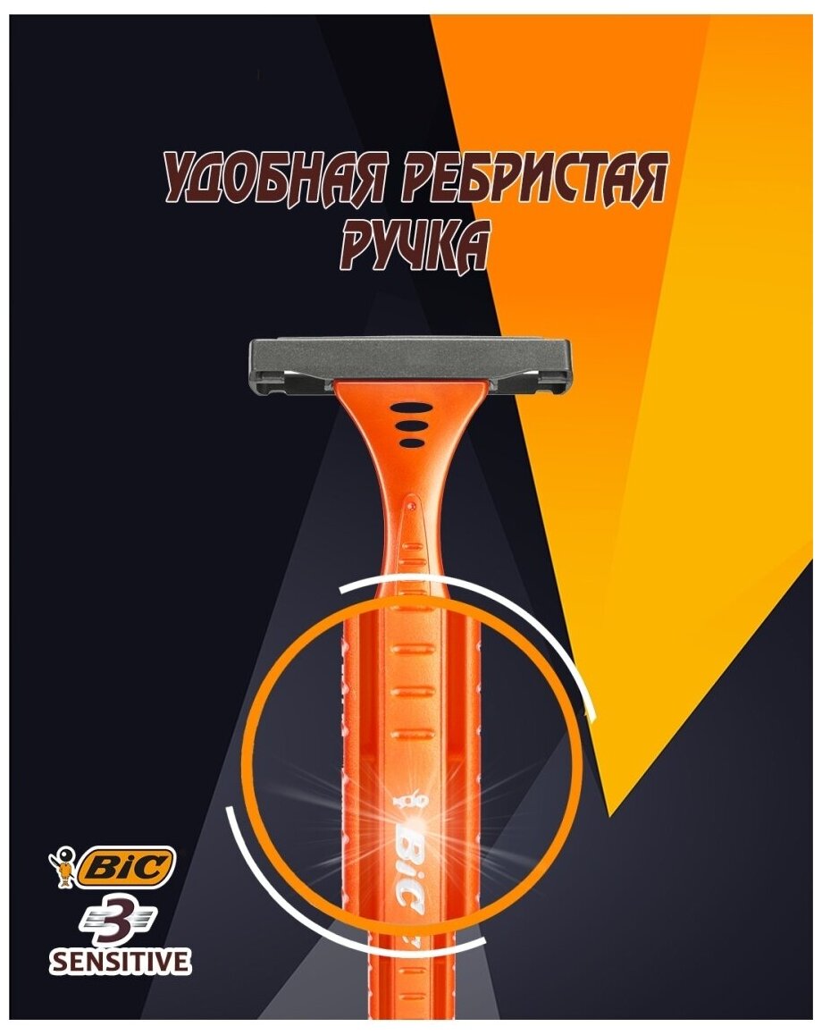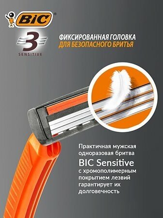Bic 3 Sensitive Одноразовый бритвенный станок, оранжевый, 4 шт.