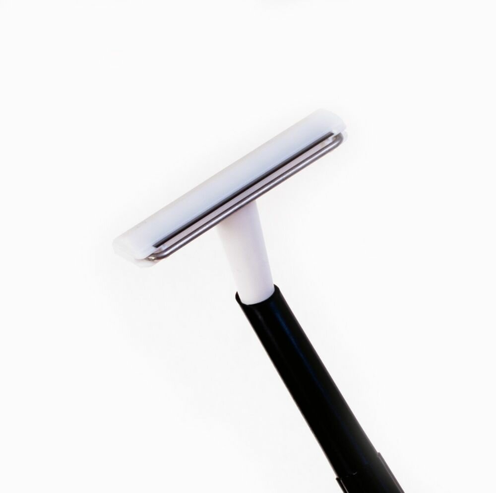 Аналогичен двусторонней т-образной бритве, но только легкий. Подходит в том случае, если у Вас в станках с двумя лезвиями щетина сразу забивается между лезвий. На этом станке щетина просто вываливается, так как вместо второго лезвия там просто подпорка.