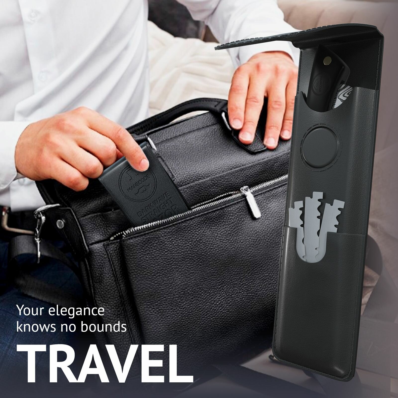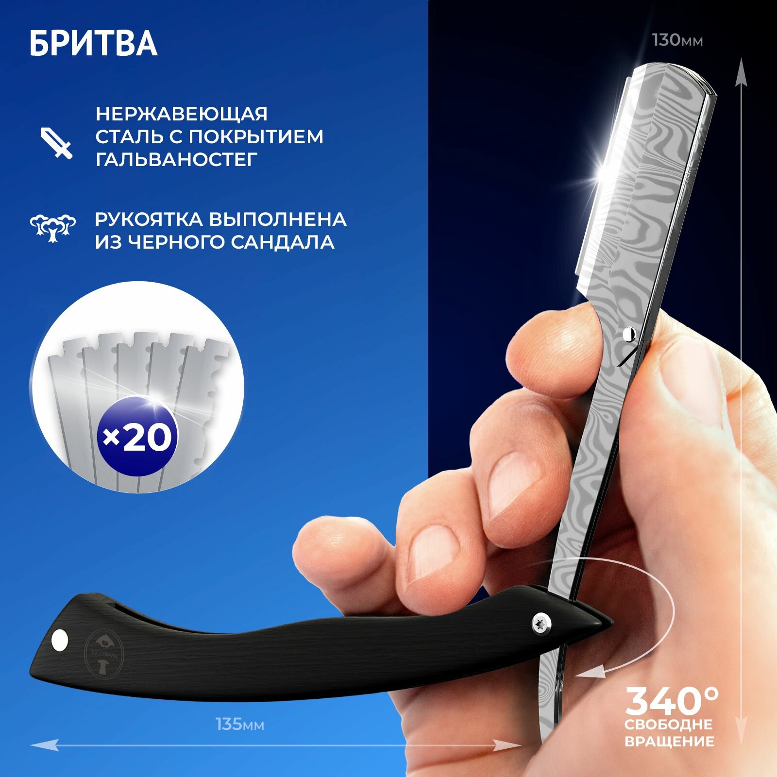 Опасная бритва для мужчин Manecode с 20 сменными лезвиями - Шаветт из нержавеющей стали с покрытием гальваностег, рукоятка из черного сандала, чехол из экокожи интересное: