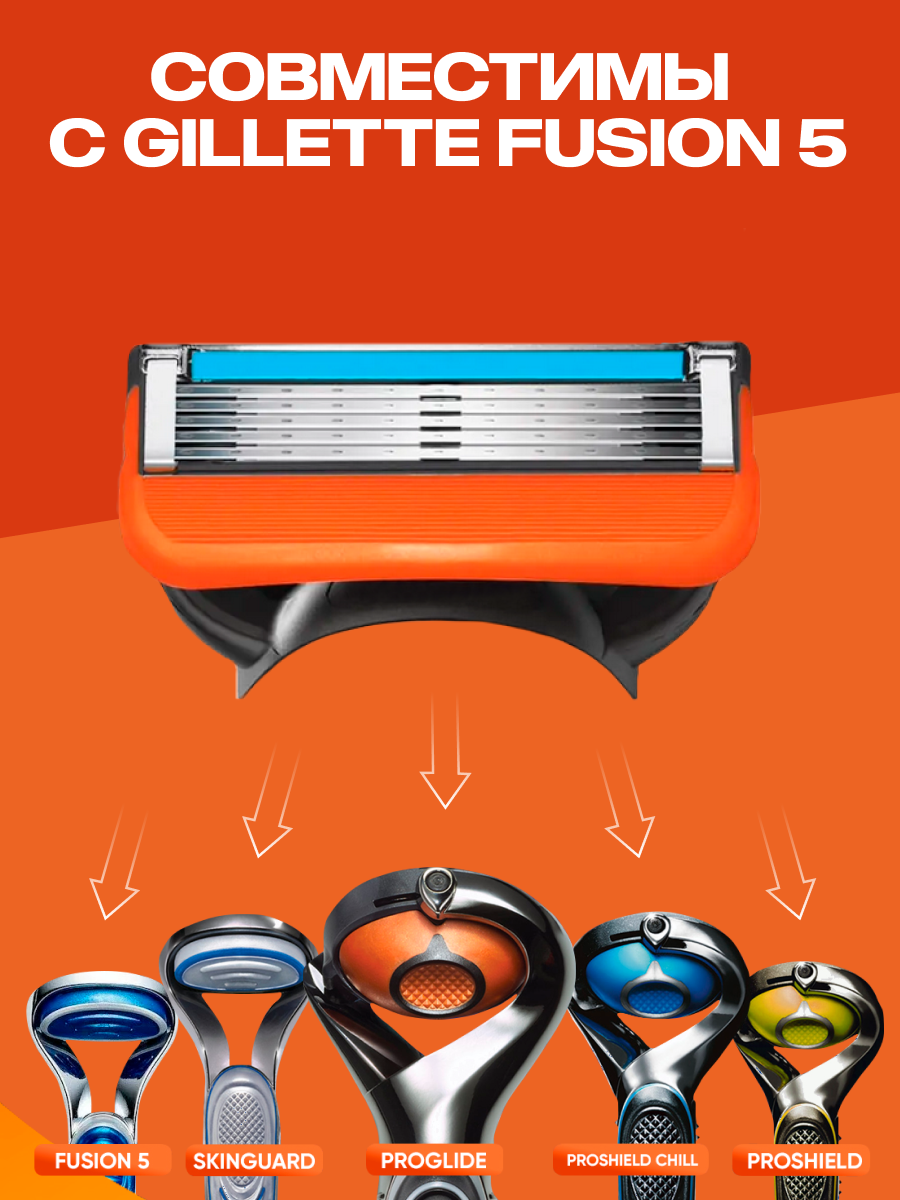 Бритвенный набор Men's Max 5 мужской, совместим с Gillette Fusion5, 1 станок + 4 сменные кассеты по 5 лезвий
