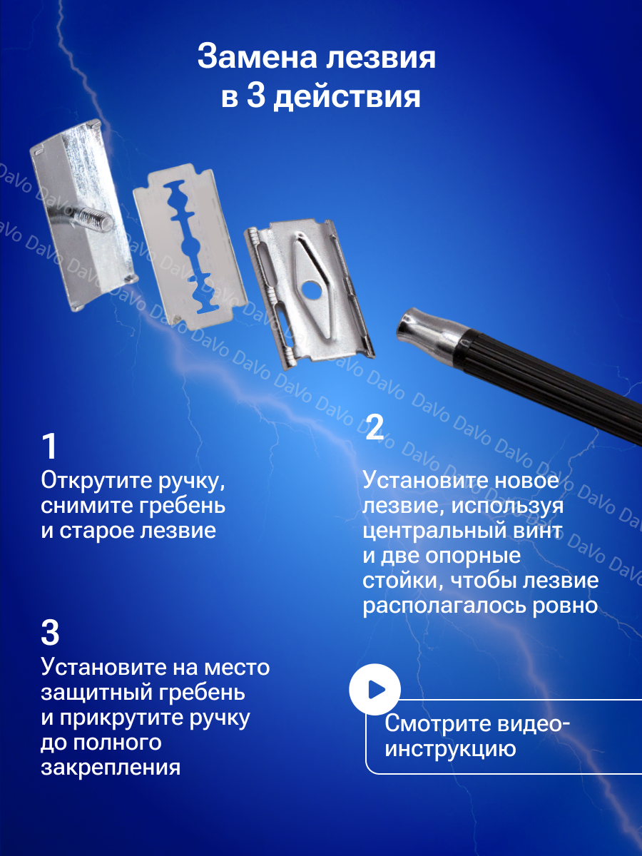 | Комплектация | Бритва многоразовая разборная - 1 шт, лезвия сменные - 3 шт, футляр для хранения бритвы пластиковый- 1 шт. |