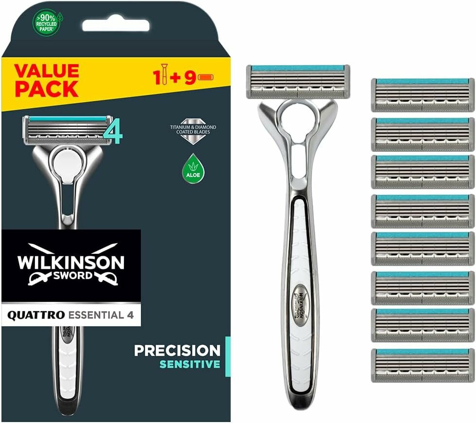 Wilkinson Sword / Schick Quattro Titanium PRECISION Sensitive / Бритвенный набор / Станок + 9 Кассет