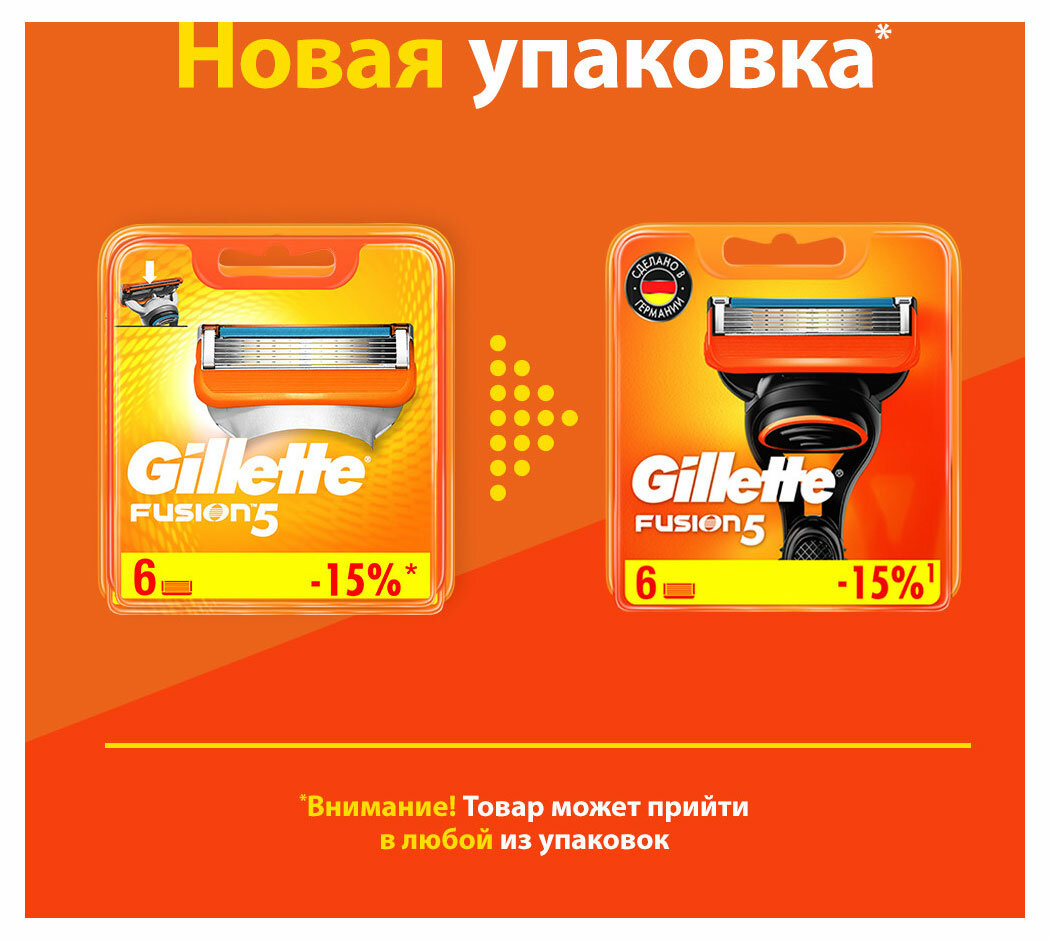 | Комплектация | Сменные кассеты для бритья Gillette Fusion5 ProGlide Power, 6 шт. |