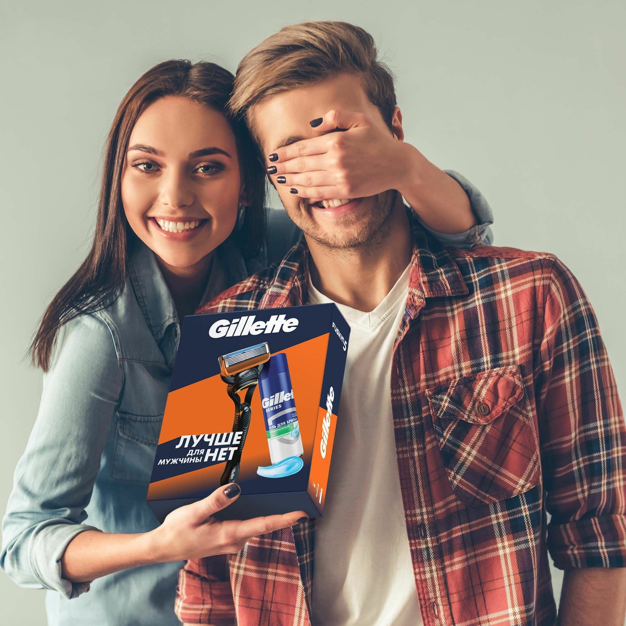 | Комплектация | Многоразовый бритвенный станок Fusion5 1 шт, сменная кассета 1 шт, гель для бритья Gillette Series Успокаивающий 200мл |