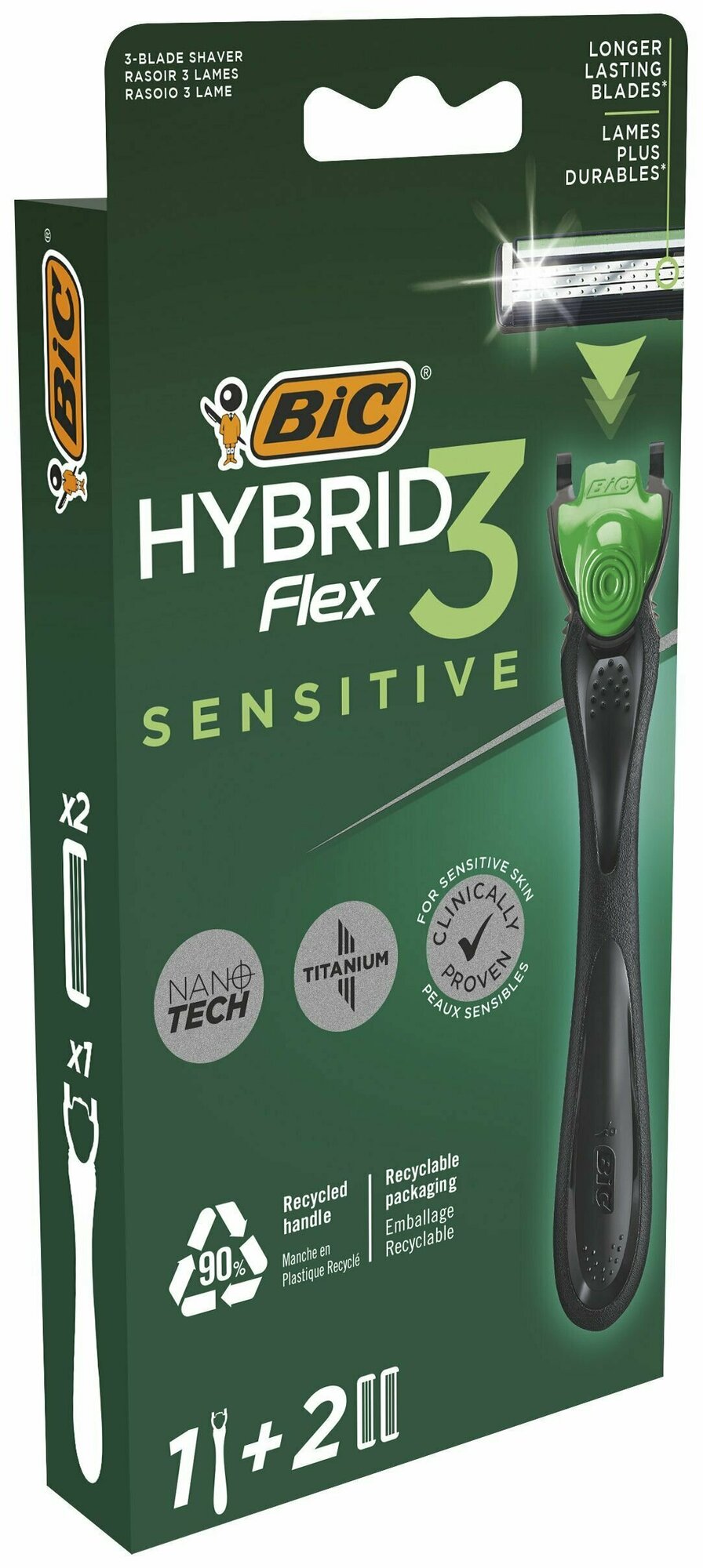 Бритвенный станок Bic Hybrid 3 Flex Sensitive, с 2 сменными кассетами