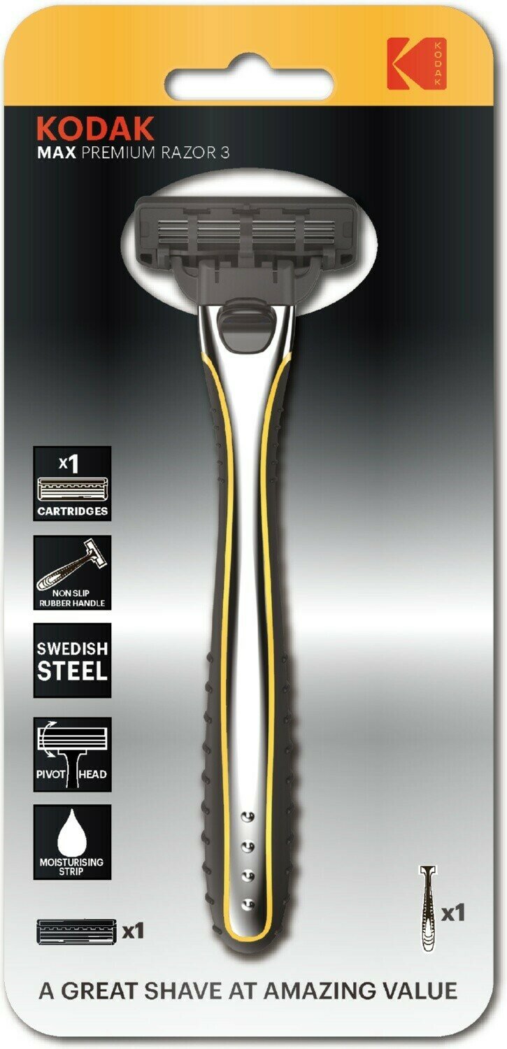 Купить Бритвенная система Kodak MAX Prem Razor 3 мужская серебро/черный 3 лезвия 1 сменная кассета (12/72/1