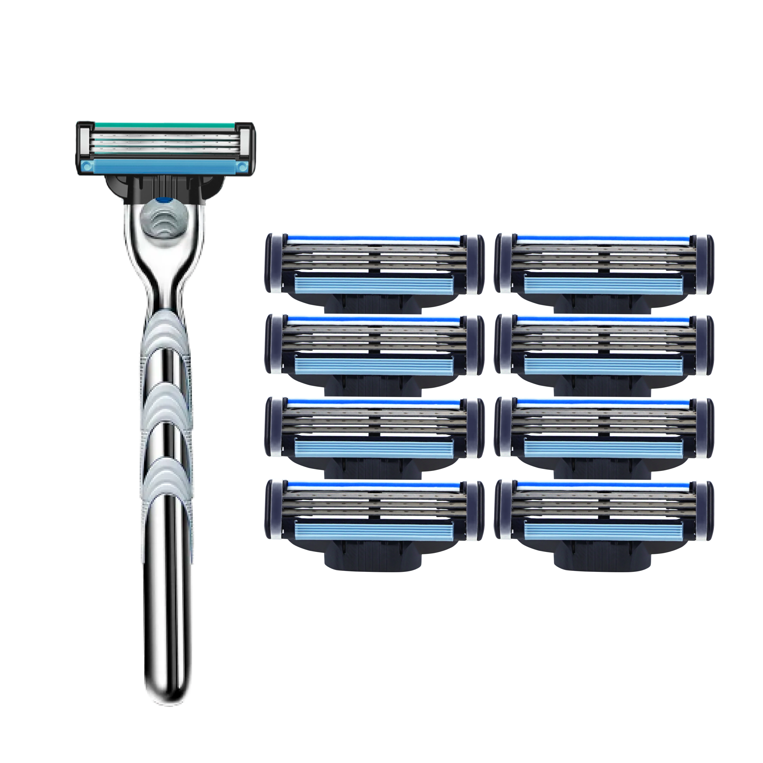 Купить Бритвенный набор Men's Mac 3 мужской, совместим с Gillette Mach 3, 1 станок + 8 сменных кассет по 3 лезвия