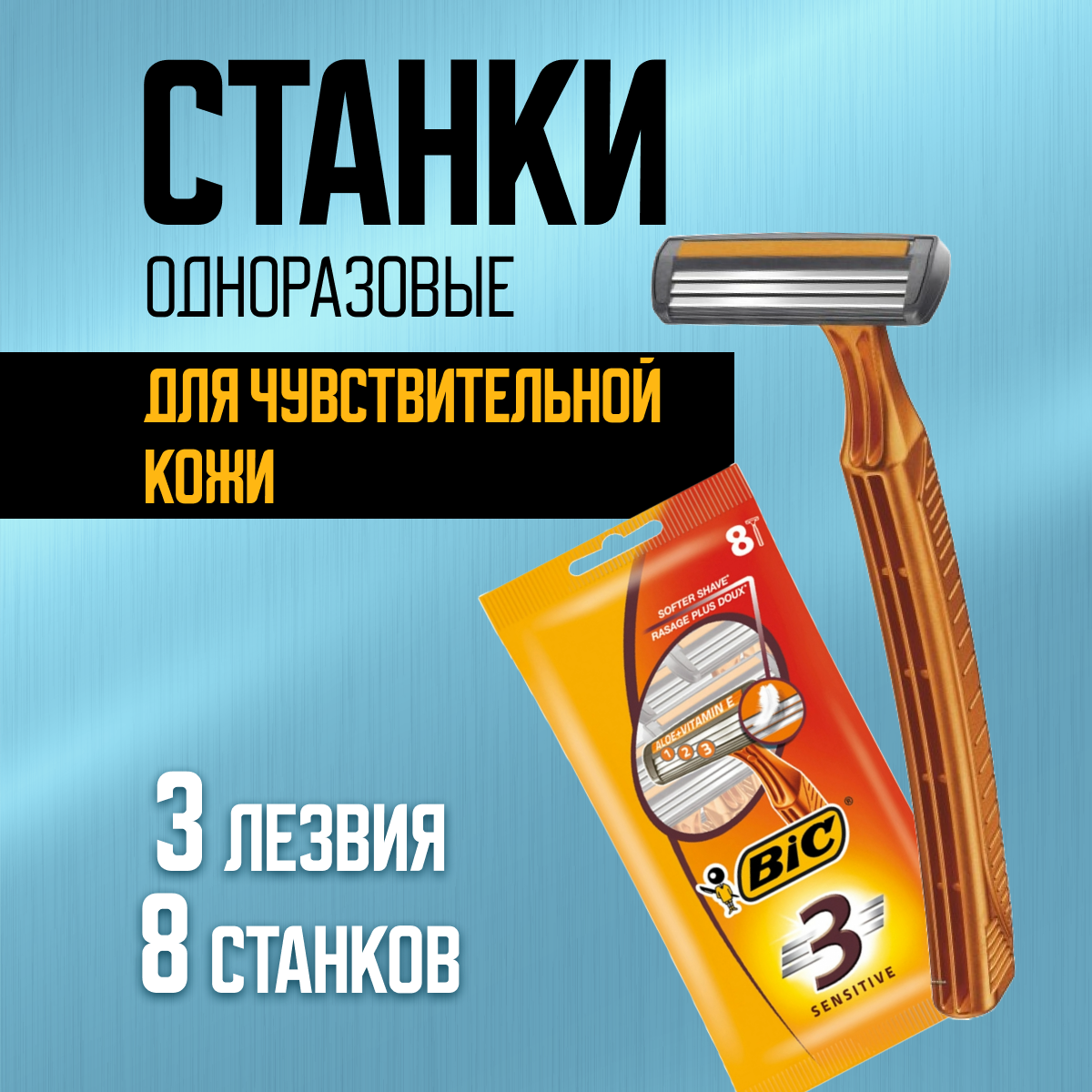 Купить Бритва одноразовая BIC 3 для чувствительной кожи, 8 шт.