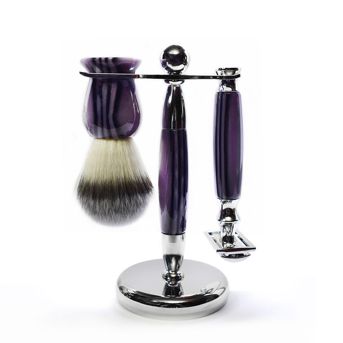 Купить Мужской набор для бритья Premium фиолетовый: бритвенный станок, помазок, подставка