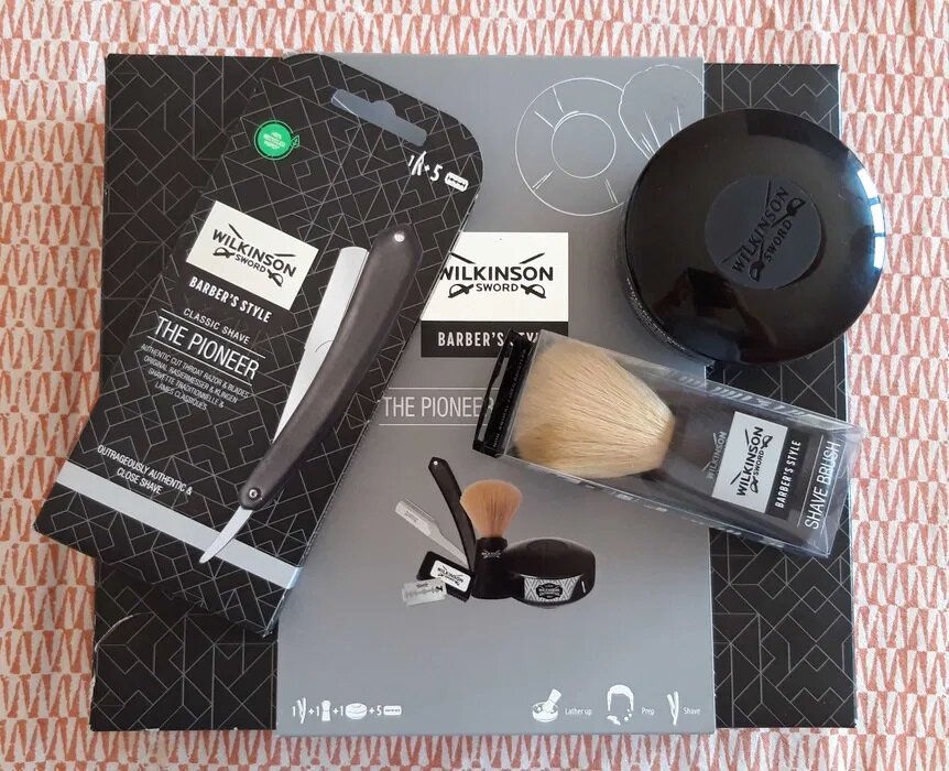 Ниже Вы можете прочитать отзывы на Wilkinson Sword / SCHICK BARBER'S STYLE Pioneer Collection / Опасная бритва ( шаветка) с 5 лезвиями + мыло + помазок, Германия, ознакомится с подробными характеристиками, посмотреть интересные обзоры и фотографии на Wilkinson Sword / SCHICK BARBER'S STYLE Pioneer Collection / Опасная бритва ( шаветка) с 5 лезвиями + мыло + помазок, Германия.