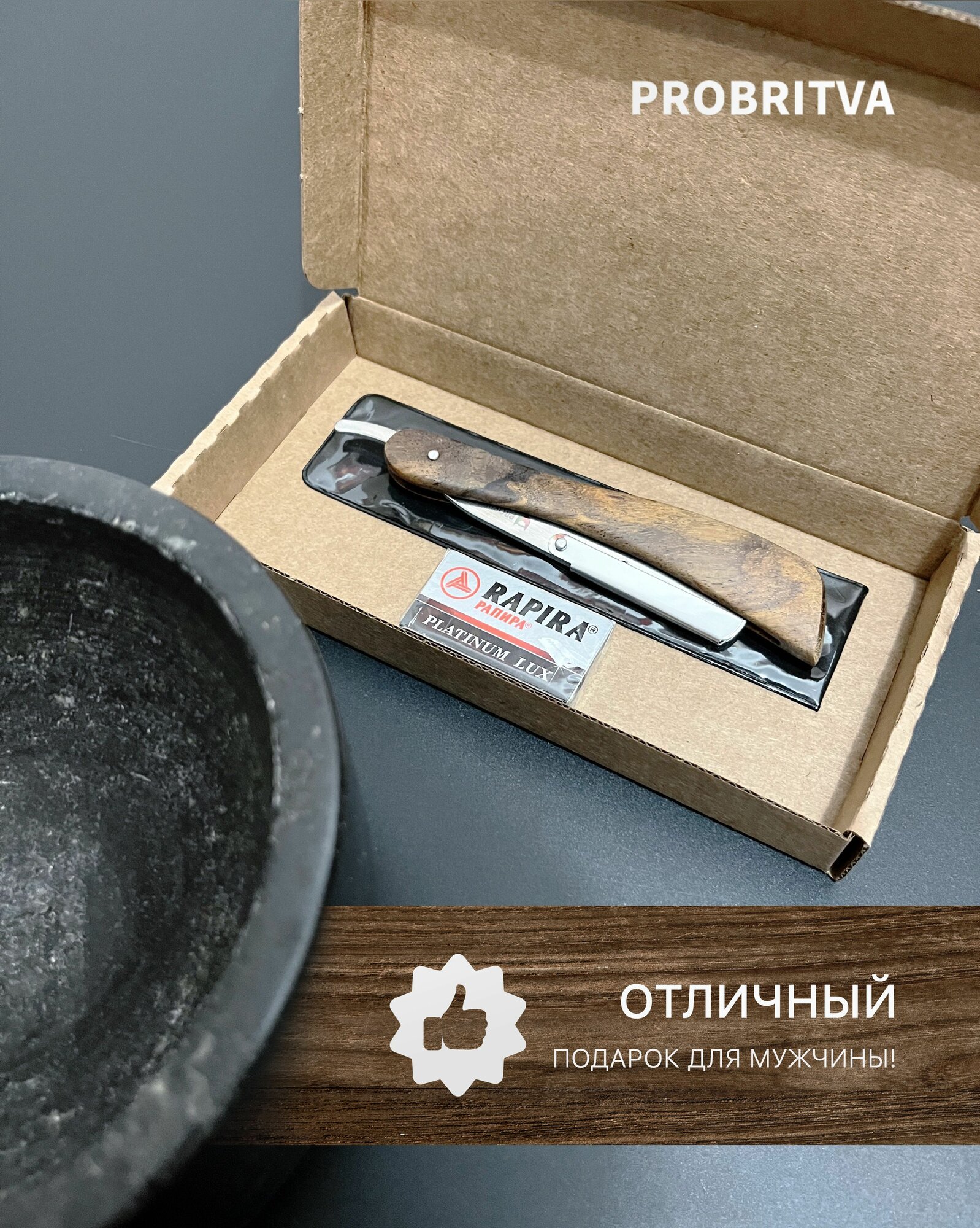PROBRITVA / Опасная бритва со сменным лезвием для мужчин. Деревянная шаветка барберская для бороды и лица , Станок шаветт для бритья интересное: