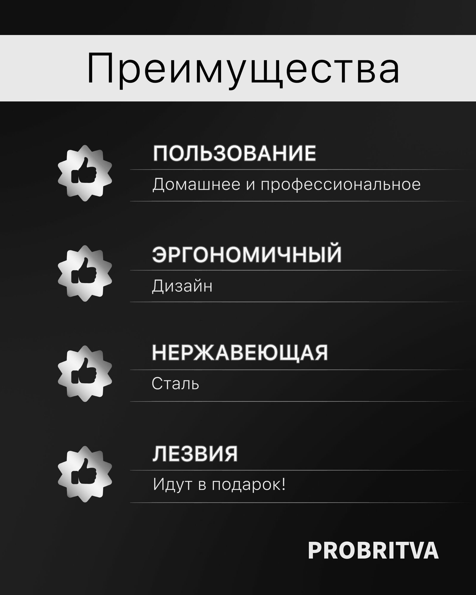 PROBRITVA / Опасная бритва со сменным лезвием для мужчин. Шаветка барберская для бороды и лица , Станок шаветт для бритья интересное: