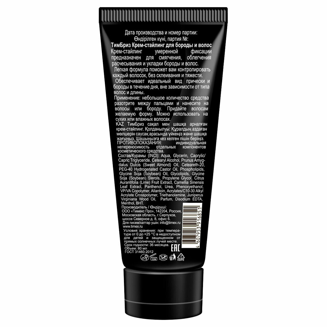 ТимБриз Крем-стайлинг для бороды и волос, 80мл интересное: