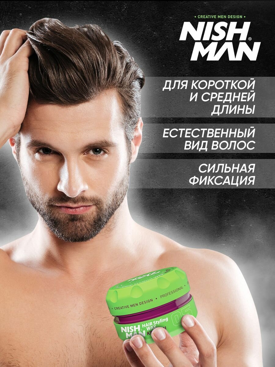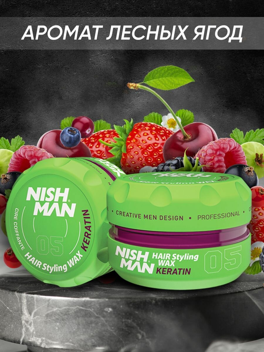 NISHMAN Воск для укладки волос на водной основе (содержит кератин, защищает волосы, не склеивает волосы, без лишнего блеска, держит укладку) сильной фиксации, аромат 05 Лесная свежесть, 150 мл
