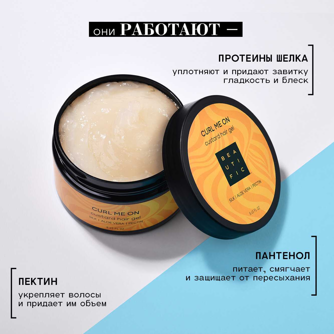 BEAUTIFIC Гель-кастард для укладки кудрявых и вьющихся волос CURL ME ON, для упругости локонов, легкая фиксация, 250 мл интересное: