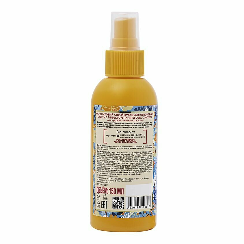 Спрей-вуаль для обновления кудрявых и вьющихся волос Natura Siberica, Oblepikha Siberica, 150 мл