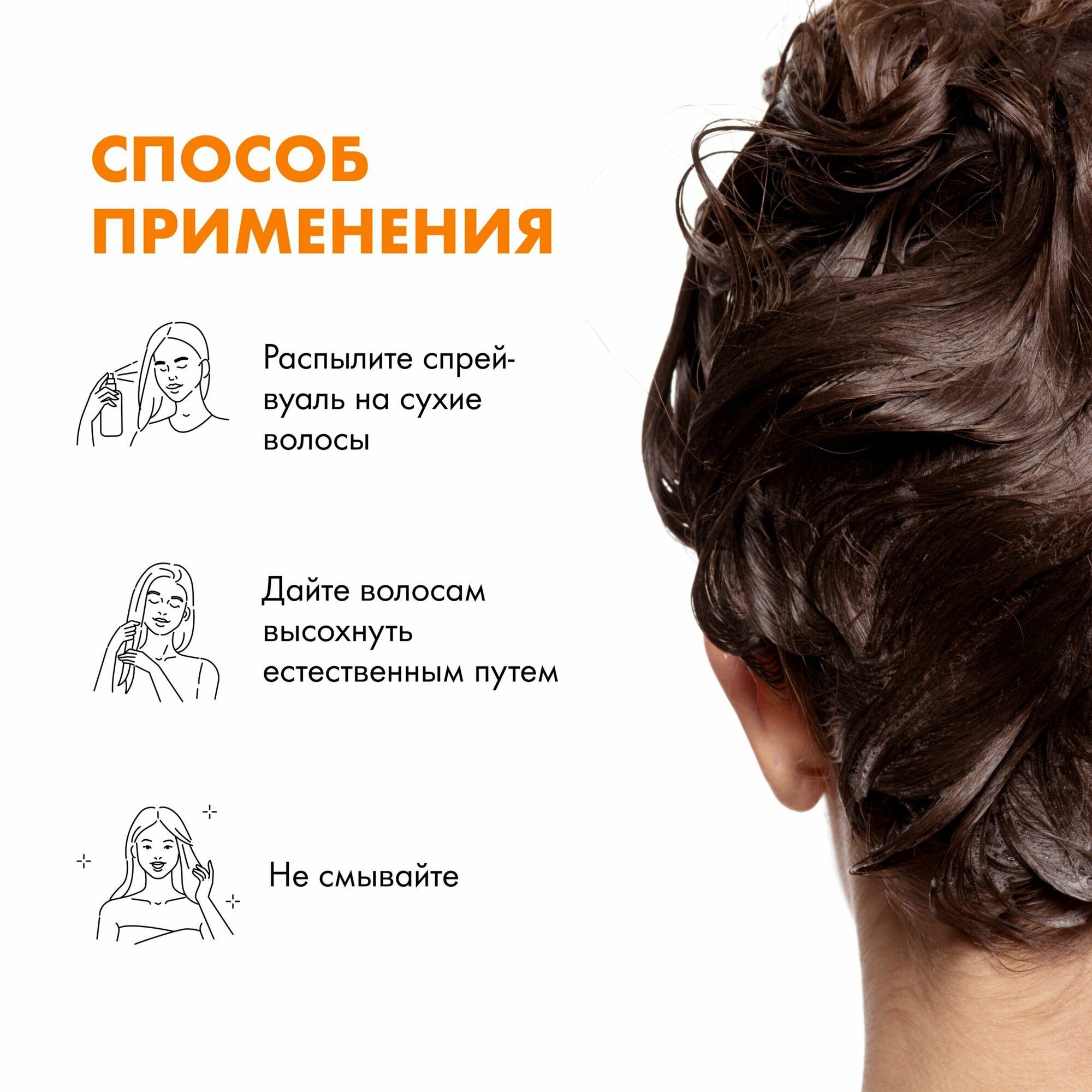 | Способ применения | Распылите спрей-вуаль на сухие волосы на 2-й день после очищения и ухода. Дайте волосам высохнуть естественным путем. Не смывайте. |