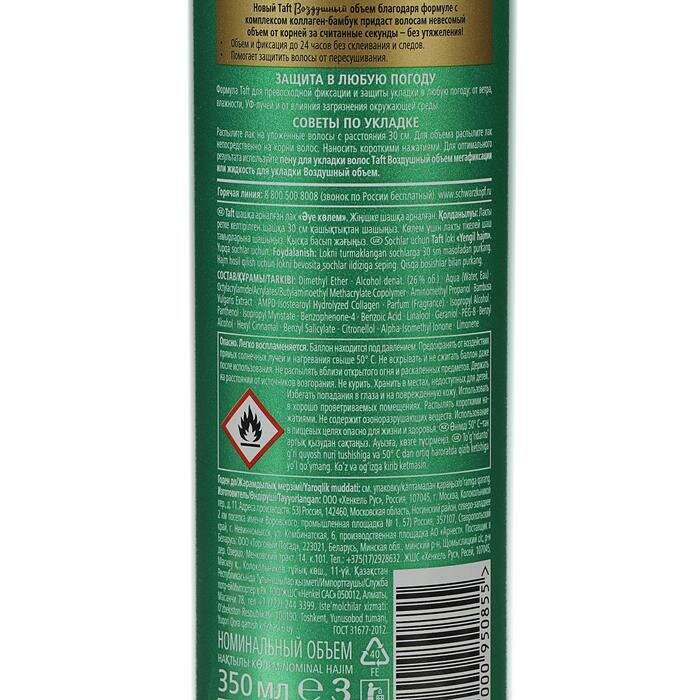 СохранитьТафт Лак для укладки волос Объём, для тонких волос, сверхсильная фиксация 4, 350 мл интересное: