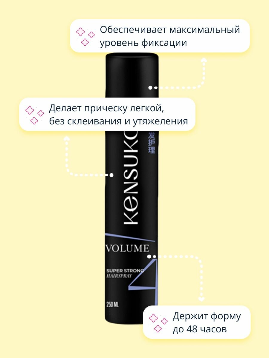 Лак для волос KENSUKO Объем и сверхсильная фиксация 250 мл интересное:
