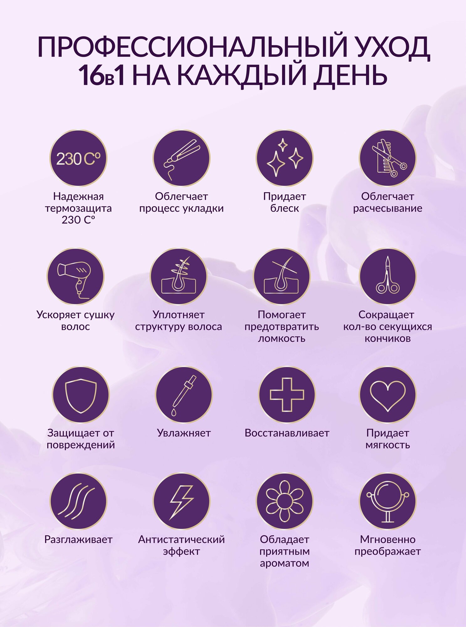| Эффект | облегчение расчесывания / придание блеска / придание мягкости / создание локонов / увлажнение |