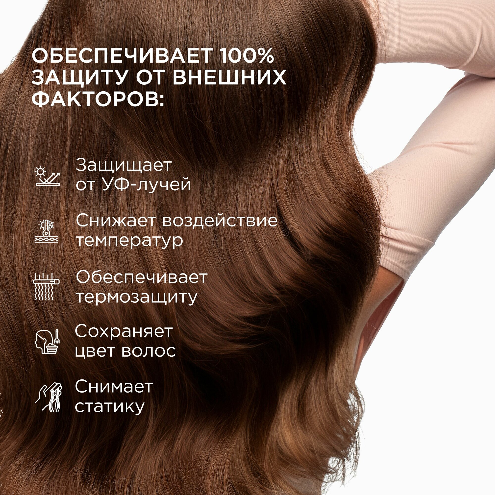 | Эффект | антистатик / защита от негативного воздействия окружающей среды / облегчение расчесывания / придание блеска / придание мягкости / увлажнение |