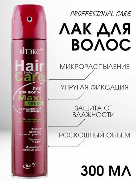 Витэкс Лак для волос Professional Hair Care Мaxi объём, сверхсильной фиксации, 300 мл