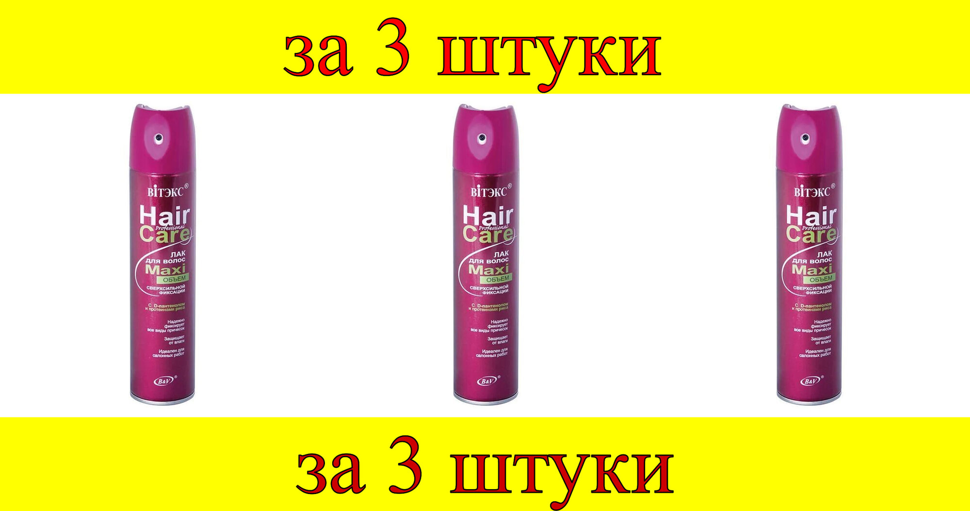 Купить Витэкс Лак для волос Hair Care, Maxi объем, 300 мл, 3 шт