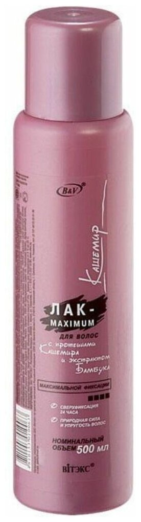 Лак для волос Белита-Витекс "Maximum", с протеинами кашемира и экстрактом бамбука, максимальная фиксация, без распылителя, 500 мл