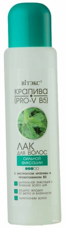 Витэкс Лак для волос с экстрактом крапивы и провитамином B5, сильная фиксация, 215 мл