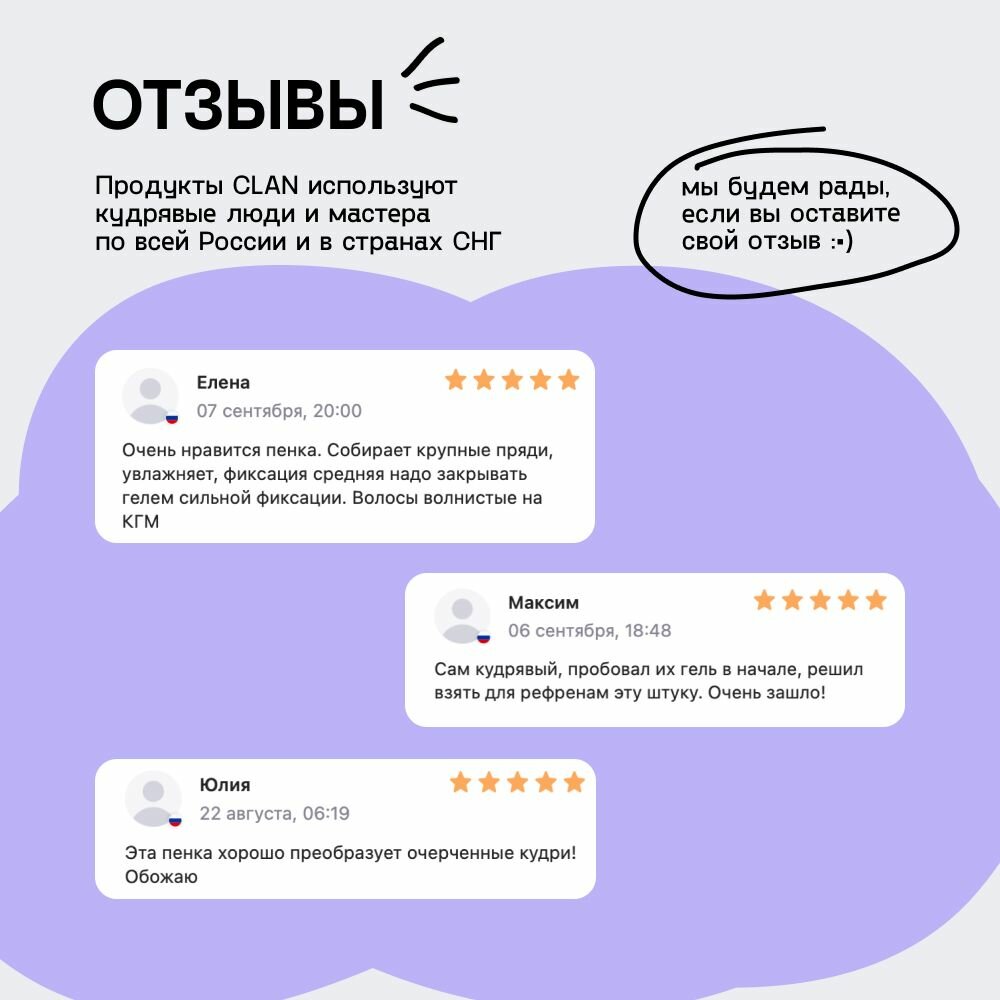 Ниже Вы можете прочитать отзывы на CLAN Пенка для укладки вьющихся и кудрявых волос TRUE VOLUME 160 мл., ознакомится с подробными характеристиками, посмотреть интересные обзоры и фотографии на CLAN Пенка для укладки вьющихся и кудрявых волос TRUE VOLUME 160 мл..