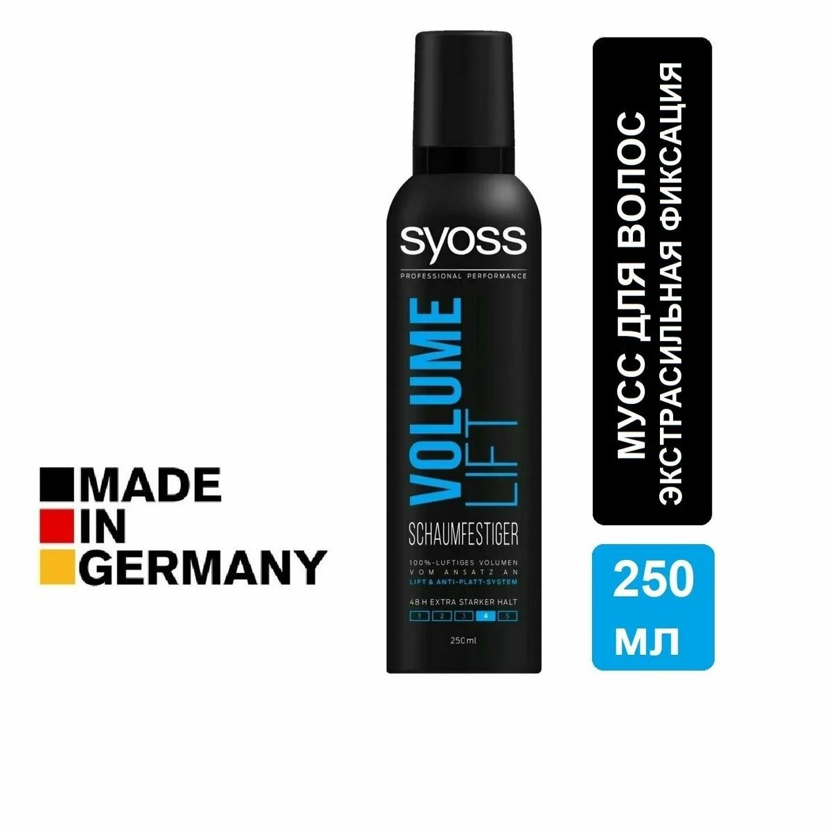 | Комплектация | Мусс для волос Syoss Volume Lift, объем №4, 250 мл. |