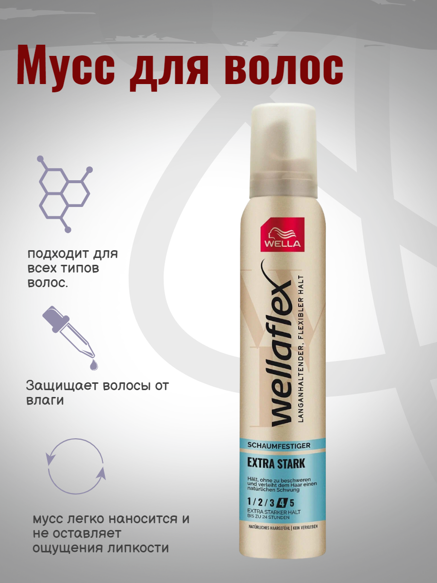 Сверхсильный мусс для волос Wella Wellaflex Extra Stark Schaumfestiger 200 мл . интересное: