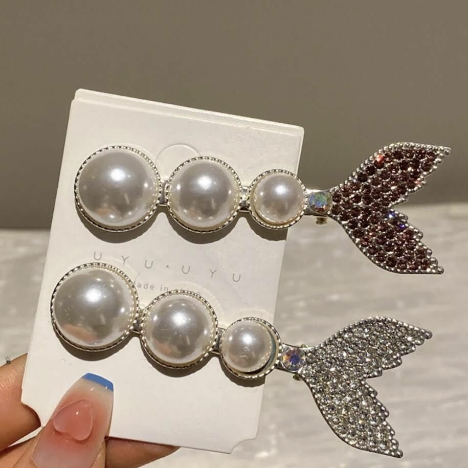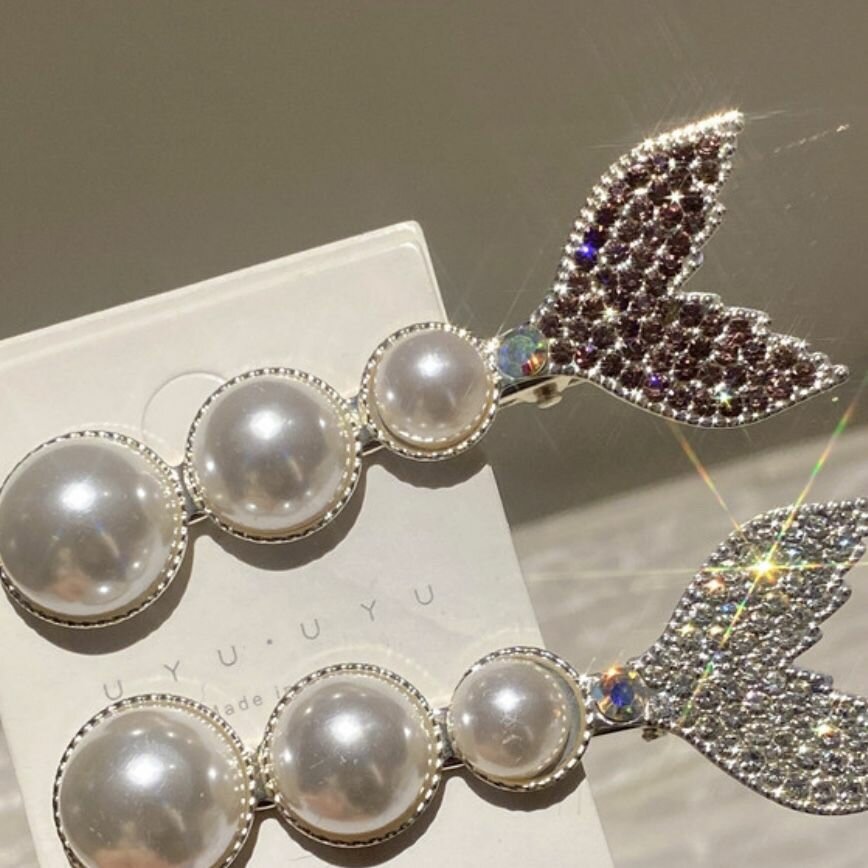 Заколка для волос со стразами и искусственным жемчугом в форме хвоста русалки