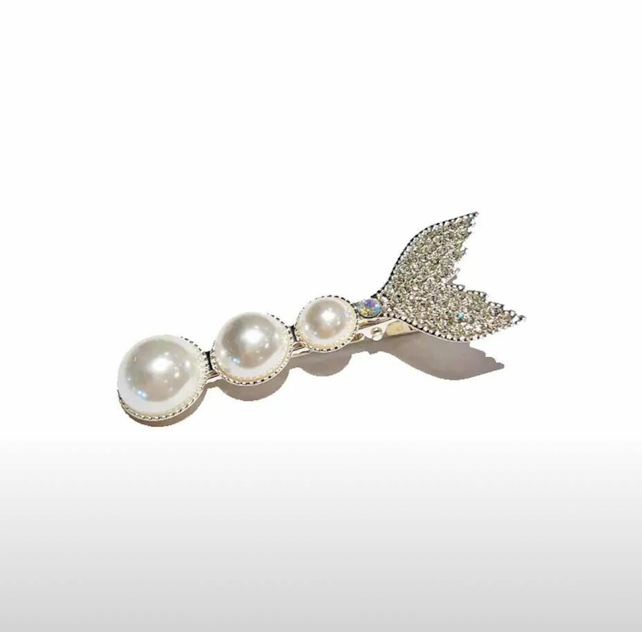 Заколка для волос со стразами и искусственным жемчугом в форме хвоста русалки интересное: