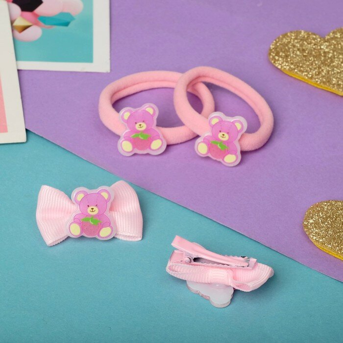 Набор для волос "Милашка" (2 зажима 3,5 см, 2 резинки) мишка интересное: