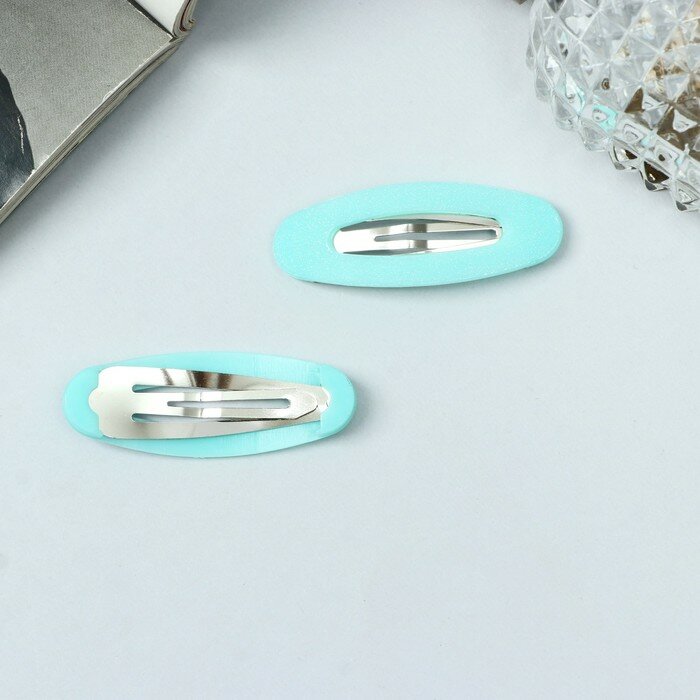 Купить Невидимка для волос "Адели" (набор 2 шт) блеск овал, 5 см, бирюзовый