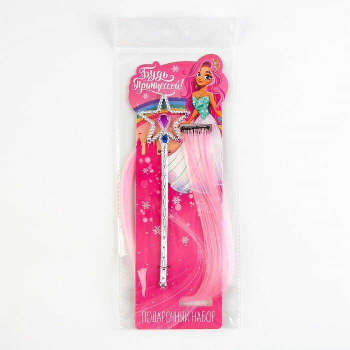 Набор аксессуаров «Будь принцессой» цветная прядь и волшебная палочка. интересное: