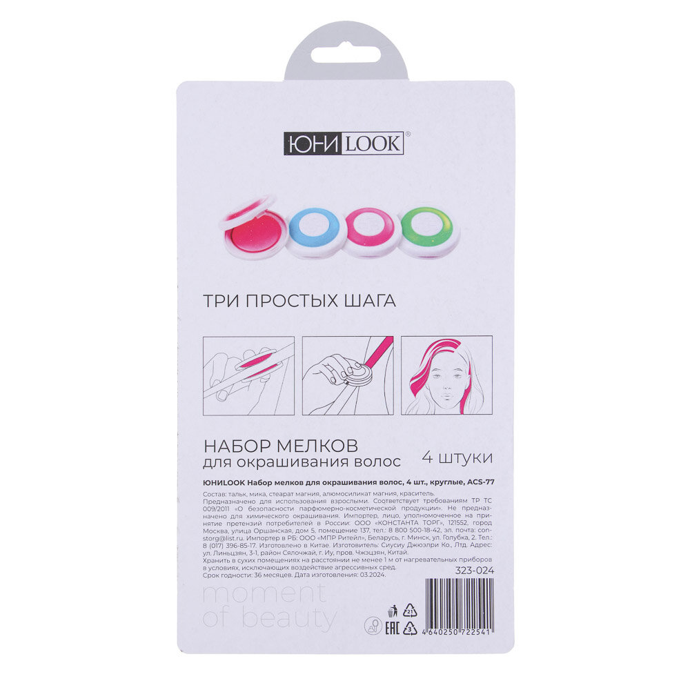 ЮНИLOOK Набор мелков для окрашивания волос 4шт, круглые, 4 цвета, ACS-77, 6 штук интересное: