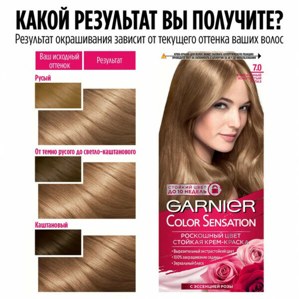Купить GARNIER Color Sensation стойкая крем-краска для волос, 7.0 Изысканный золотистый топаз, 110 мл - 1 шт