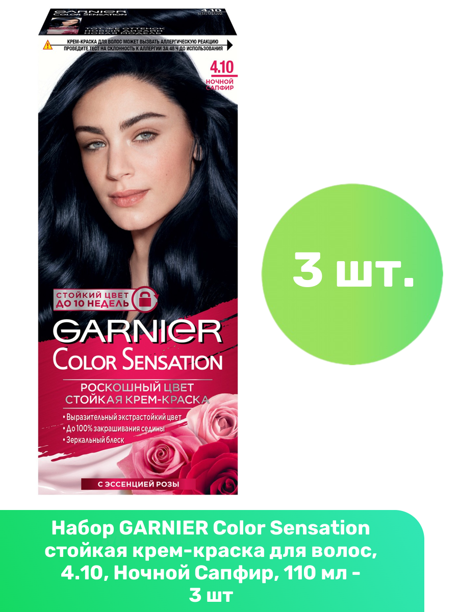 Купить GARNIER Color Sensation стойкая крем-краска для волос, 4.10, Ночной Сапфир, 110 мл - 3 шт